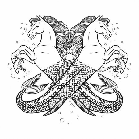 Kolorowanka dla dzieci przedstawiająca dwa koniki syrenki. Do pobrania i wydrukowania za darmo.