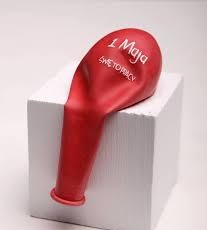 Malutki czerwony balon z napisem 1 Maja Święto Pracy położony na białej kostce.