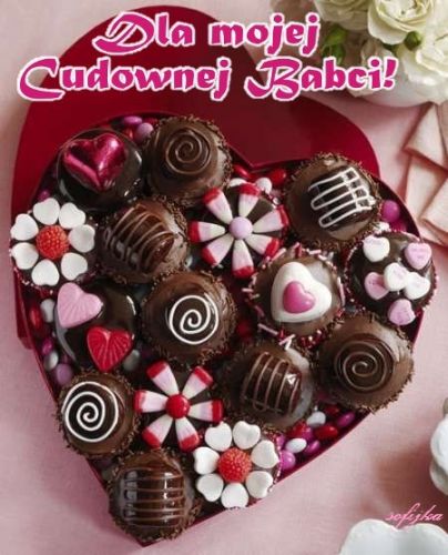 Pyszne czekoladki w sercowym pudełku przygotowane dla cudownej babci z okazji jej święta. 21 styczeń.