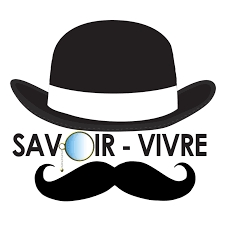 Obrazek bez tła przedstawiający czarny kapelusz i wąsy, a między nimi napis savoir-vivre.