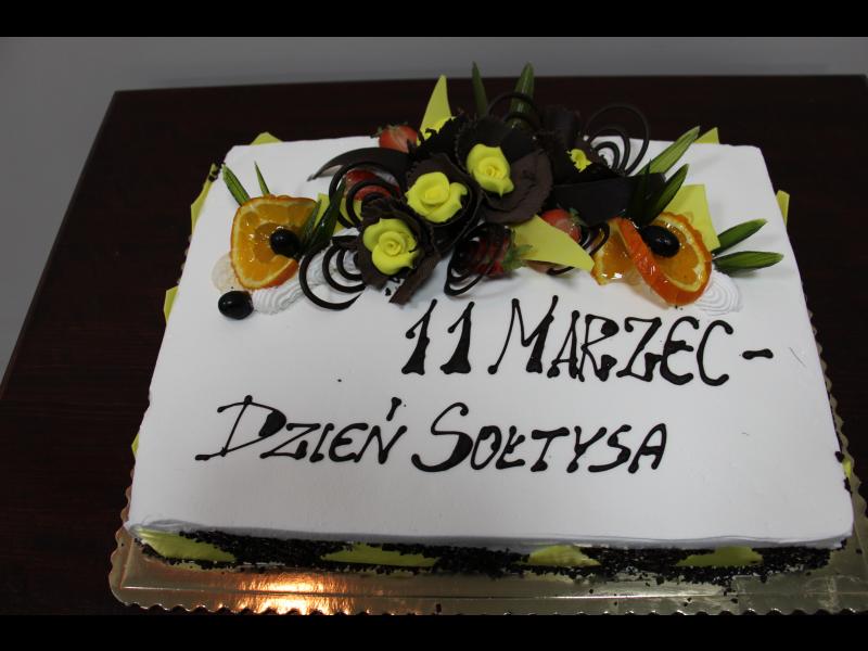 Pyszny mały czekoladowy tort z napisem dzień sołtysa. 11 marzec.
