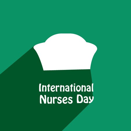 Biały napis Międzynarodowy Dzień Pielęgniarek na zielonym tle.