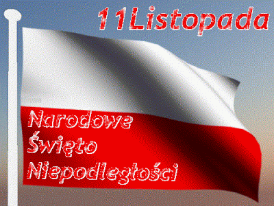 Animowany obrazek z godłem Polski, napisem: "11...