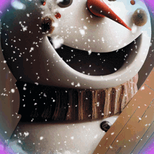 Animowany gif przedstawiający uśmiechniętego bałwana, który przychodzi do nas z życzeniami szczęśliwego nowego 2024 roku. Bałwanowi nie przeszkadza nawet śnieżyca.