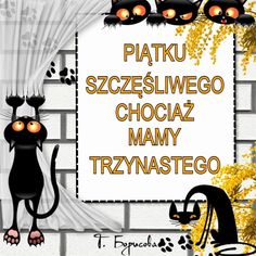 Kartka z czarnymi kotami, które przypominają, że dziś piątek 13-tego.