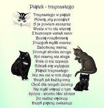 Kartka z czarnymi kotami i długim wierszem przygotowanym na piątek 13-go. "Trzynastego w piątek. Mówią zły początek. A ja powiem szczerze. Wcale w to nie wierzę. Z humorem wstań rano. Buzią roześmianą przegoń myśli czarne. Zabobony marne. Promyk słonka mruga. Kot czarny nie sługa (...)". Miłego dnia.