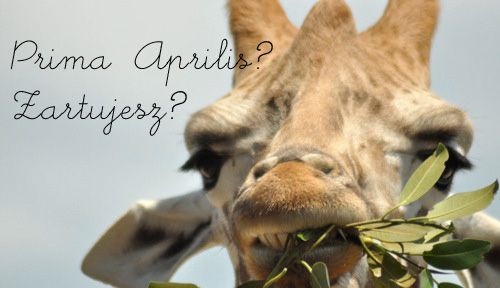 Kartka z żyrafą, która myśli, że żartujemy iż dzisiaj jest Prima Aprilis.