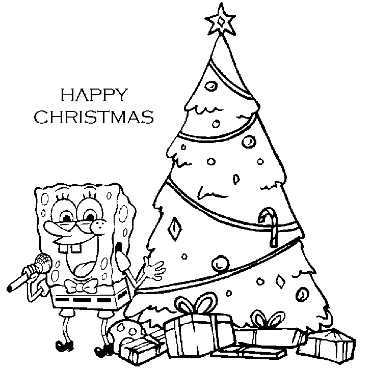 Kolorowanka SpongeBob śpiewa przy choince