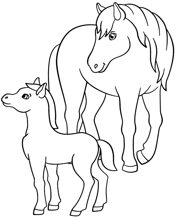 Kolorowanka koń i źrebak