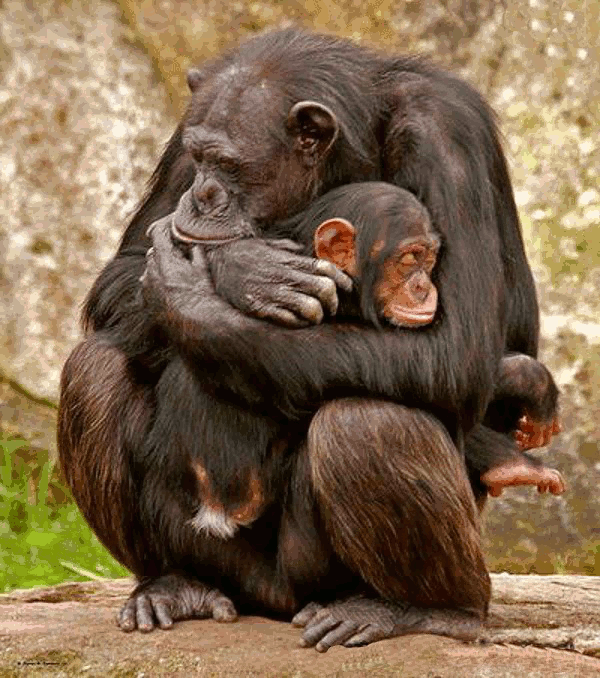 Animowany gif z małpkami przytulonymi do siebie.