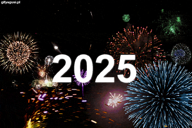 Duży złoty napis pojawiający się na niebie Szczęśliwego Nowego Roku 2025....
