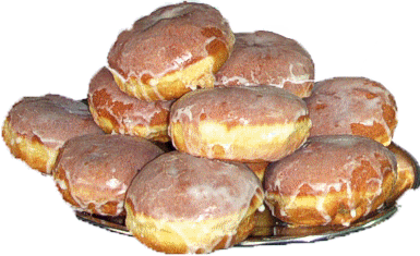 Pączki z lukrem i napis:  "Smacznego:Słodkiego...
