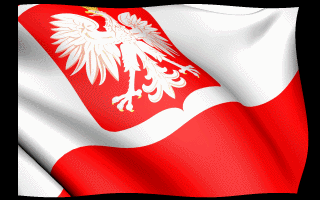 Duża flaga Polski z orłem w koronie i napisem Narodowe Święto...
