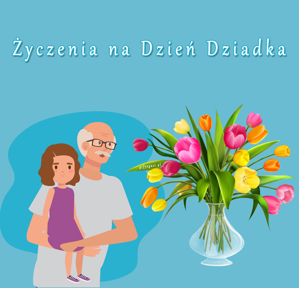 Kartka z dziadkiem o lasce i życzeniami "Kochany Dziadku - zacznę...