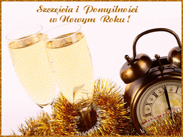 Kartka z szampanem i życzenia Noworoczne: "Szczęśliwego Nowego...