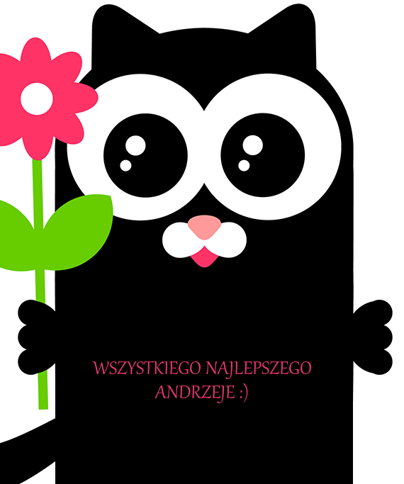 Kartka: Czarny kotek z życzeniami na andrzejki