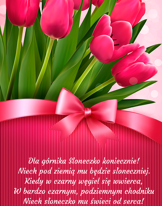 Kartka: Piękne różowe tulipany z życzeniami na dzień górnika