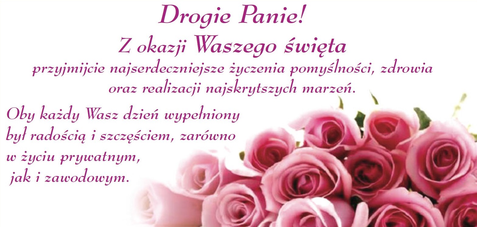 Kartka: Skromny bukiet różowych róż z życzeniami na dzień kobiet