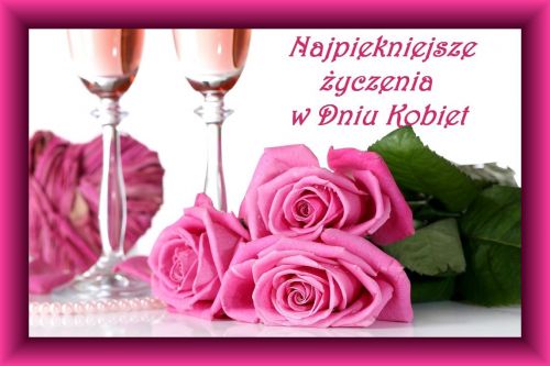 Kartka: Trzy róże z życzeniami 8 marca