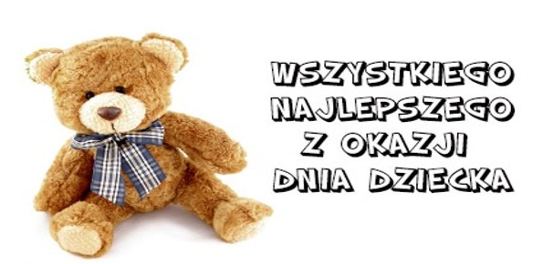 Kartka: Misiu pluszowy życzy wszystkiego najlepszego z okazji Dnia Dziecka